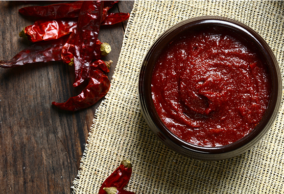 In bibimbap, red pepper paste plays the vital role of uniting the many ingredients, each with its own taste, so they blend well together in one bowl.