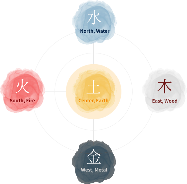 elements—water, wood, fire, metal, and earth.