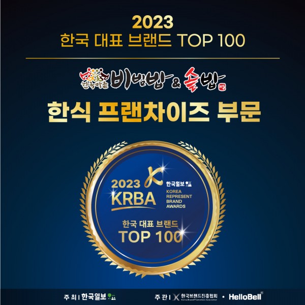▶2023년 한국일보 주관 한국 대표브랜드 TOP 100 『한식 프랜차이즈』 부문 선정
